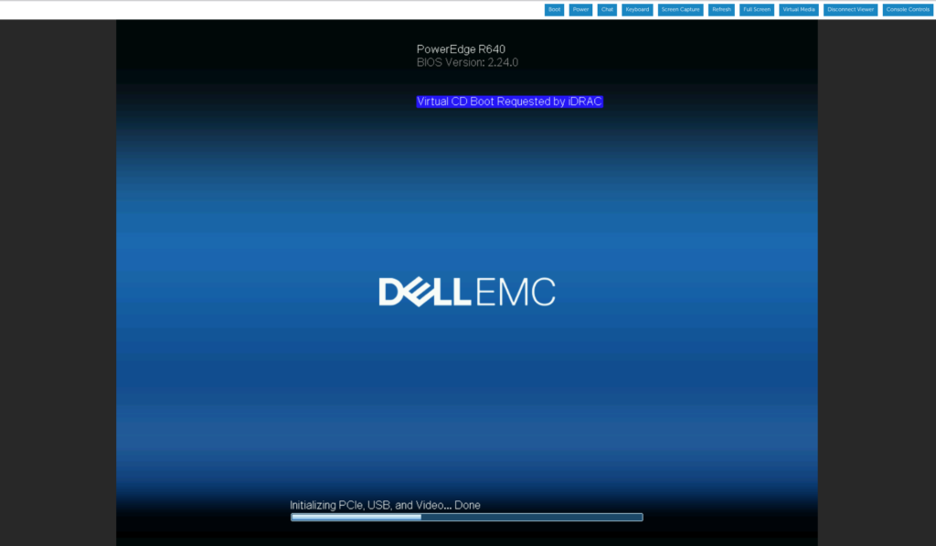 As the Dell EMC splash screen crawls across the screen, you’ll eventually see: